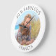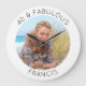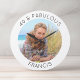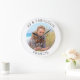 Créez votre propre cercle personnalisé photo horloge murale ronde pour sa fête de 40e anniversaire. Customisez la couleur arrière - plan blanche solide ou la couleur de texte de ligne mince noire pour correspondre à votre photo. Si vous modifiez le type ou la taille de police, vous pouvez ajuster la courbure du texte par petits incréments. Amusez-vous à créer votre propre design personnalisé.