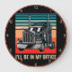 Cette horloge attrayante déclare "I'LL BE IN MY OFFICE" pour le conducteur de camion dédié, avec un semi-camion moderne contre un arrière - plan rétro élégant rayé. C'est un parfait mélange de fierté du camionnage et d'esthétique vintage cool, ce qui en fait un excellent ajout à n'importe quelle maison ou bureau. Idéal pour faire des cadeaux les anniversaires ou les Fêtes des pères.