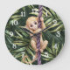 Grande Horloge Ronde Monkey Purple Rope Green Leaves