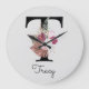 Grande Horloge Ronde Monogram Pink Boho Girly Floral Initial T