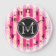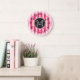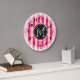 Grande Horloge Ronde Monogramme Hot Pink Stripes Moderne Motif de coeur
