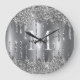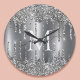 Apportez une élégance moderne et cool à n'importe quelle pièce avec cette horloge murale personnalisée à gouttes de paillettes argentées. Dotée d'un design en cascade de fausses paillettes élégant avec votre monogramme et votre nom personnalisés, cette horloge ajoute une touche raffinée d'éclat à votre décoration murale.