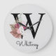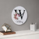 Grande Horloge Ronde Monogramme Rose Boho Girly Floral Initial W