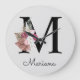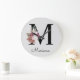 Grande Horloge Ronde Monogramme rose Boho Girly Floral initiale M