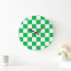Grande Horloge Ronde Motif blanc À damiers blanc vert