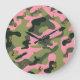 Grande Horloge Ronde Motif camouflage camouflage armée vert rose pays