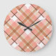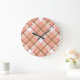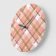 Grande Horloge Ronde Motif carreaux moderne pêche rouge orange blanc ma