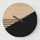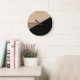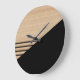 Grande Horloge Ronde Motif Contemporain En Blocs Sur Faux Bois