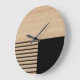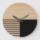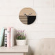 Grande Horloge Ronde Motif Contemporain En Blocs Sur Faux Bois