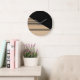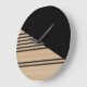Grande Horloge Ronde Motif Contemporain En Blocs Sur Faux Bois