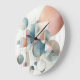 Grande Horloge Ronde Motif d'art abstrait bleu sarcelle gris beige roui