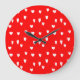 Grande Horloge Ronde Motif de coeur blanc sur rouge