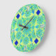 Grande Horloge Ronde Motif de mandala, turquoise, bleu, vert de chaux