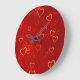 Grande Horloge Ronde motif des coeurs rouges