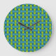Grande Horloge Ronde Motif géométrique abstrait rétro en bleu et vert