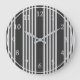 Grande Horloge Ronde Motif gris clair et charbon cinq bandes