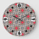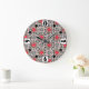 Grande Horloge Ronde motif moderne géométrique art déco gris rouge, bei