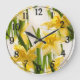 Grande Horloge Ronde Motif papier peint jonquille jaune