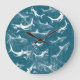 Grande Horloge Ronde Motif Requin Bleu en Distress