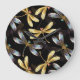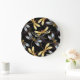 Grande Horloge Ronde Motif sans couture avec libellules d'or