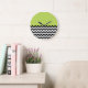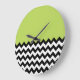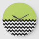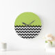 Grande Horloge Ronde Motif Zigzag noir et blanc, Chevron, Vert