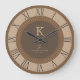 Grande Horloge Ronde Mousse Marron Élégant Moderne Monogramme Familial