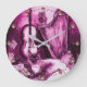 Grande Horloge Ronde MUSICAL CAT WITH OWL VIOLIN ET HARP Pink Purple