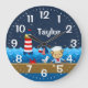 Grande Horloge Ronde Nautical Boy Monkey Rouge et Marine