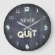 This bold Never Quit wall clock features a distressed dark blue concrete-style background that adds a modern, industrial feel to any workout space. The mixed ivory and soft turquoise numbers create visual interest while keeping the design clean and readable.