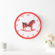 Grande Horloge Ronde Noël scandinave Cheval Rocking