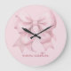 Grande Horloge Ronde Nœud Rose Tendance Personnalisé Avec Nom Monogramm