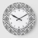 Grande Horloge Ronde Noir sur le motif Damas blanc