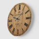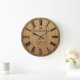 Grande horloge personnalisée avec nom de famille avec illustration vintage de chiffres romains visage horloge, sur la texture rustique du bois. Idéal pour la décoration de ferme, customisez facilement cette horloge murale en bois comme votre nom de famille, année établie et couleurs préférées (horloge visage et texte).