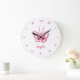 Grande Horloge Ronde Nom de la Personnaliser Papillons roses Filles