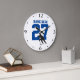 Grande Horloge Ronde Nom du joueur de hockey personnalisé Numéro bleu