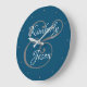 Grande Horloge Ronde Noms de Script DIY Lui & Elle, Blanc & Gris sur No