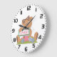 Grande Horloge Ronde Nounours avec nœud tenant un panneau sourire