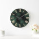 Grande Horloge Ronde Numéro romain Tropical Monstera Vert Or Métallique