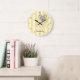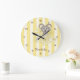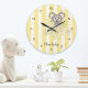 La conception du produit présente un bébé koala entouré de fleurs. L'animal de dessin animé adorable avec des rayures jaunes fait une horloge murale unique et mignonne avec un texte personnalisé pour la nurserie et la chambre d'enfant.