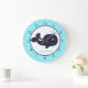 Grande Horloge Ronde Nurserie de baleines sarcelle et bleu marine Enfan