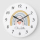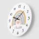 Grande Horloge Ronde Nurserie de prénom de bébé arc-en-ciel aquarelle p