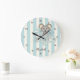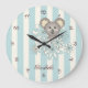 Grande Horloge Ronde Nursery / Chambre d'enfant Koala Mignon Rayure Ble