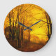 Horloge représentant la peinture de John Atkinson Grimshaw Octobre Afterglow (1836-1893). Une route anglaise en automne avec des feuilles tombés et des squelettes se baignent dans la lumière sombre du ciel d'octobre. Une femme victorienne se trouve à l'extérieur d'un manoir. Un cadeau merveilleux pour les amateurs de romantisme et d'Angleterre victorienne et pour ceux qui ont des sensibilités sombres.