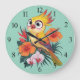 Grande Horloge Ronde Oiseaux jaunes adorables avec fleurs