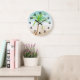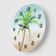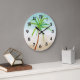 Grande Horloge Ronde Ombre de sable Bleu Tropical Palm Tree