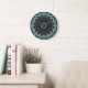 Grande Horloge Ronde Orange bleu Turquoise noir Mandala Boho Art