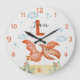 Grande Horloge Ronde Orange Dinosaur Nursery Wall Clock Personalized