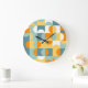 Grande Horloge Ronde Orange Jaune Turquoise Bleu Mer Motif Art Rétro