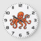 Grande Horloge Ronde Orange Octopus Cartoon Ocean Sea Creature
