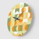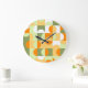 Grande Horloge Ronde Orange Sunny Jaune foncé Vert Motif d'art rétro